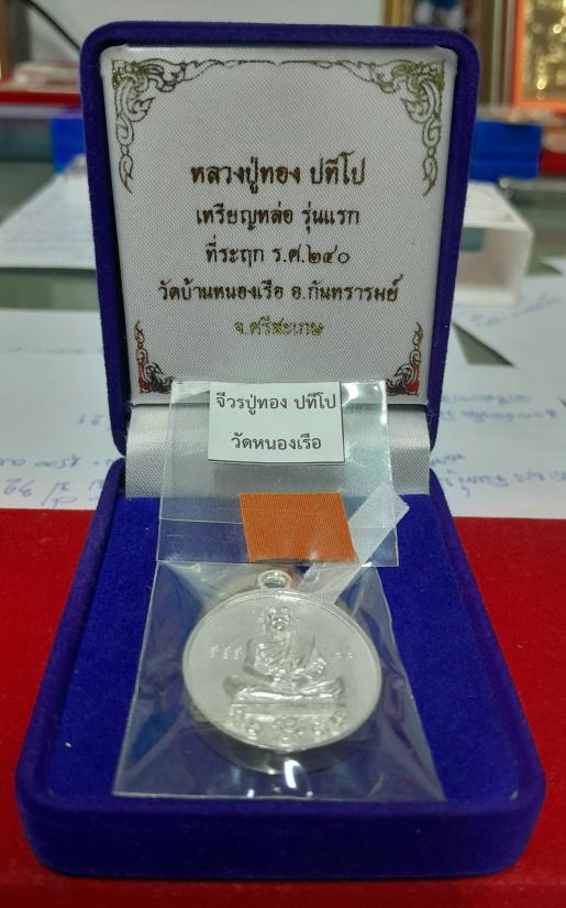เหรียญหล่อ รุ่นแรก ร.ศ.240 "เนื้อเงิน เลข 44" พร้อมจีวร หลวงปู่ทอง วัดบ้านหนองเรือ (น้ำหนัก 24.53 กรัม)