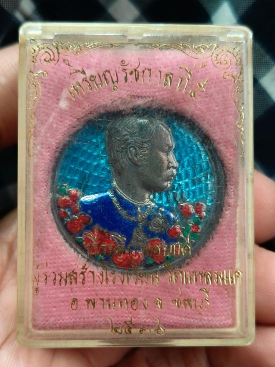 เคาะเดียว+ เหรียญ รัชกาลที่5 "เนื้อเงิน ลงยา" ปี36 วัดแหลมแค พานทอง |