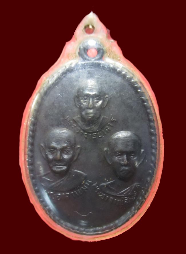 เหรียญสามพระอาจารย์ หลวงปู่เสาร์,หลวงปู่มั่น,พระอาจารย์สิงห์ วัดป่าสาลวัน ปี 2518