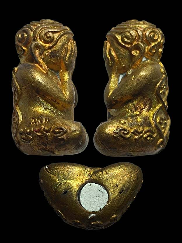 พระปิดตาเรียกทรัพย์ หล่อโบราณ รุ่นแรก (เนื้อแร่กระแสทองคำ) หลวงปู่จันทร์ วัดซับน้อย จ.เพชรบูรณ์ หมายเลข 140 ตอกโค๊ต ว.ซ.น. อุดผงพุทธคุณผสมเส้นพระเกศา พระสวย หายาก กล่องเดิมๆ ใสๆ |
