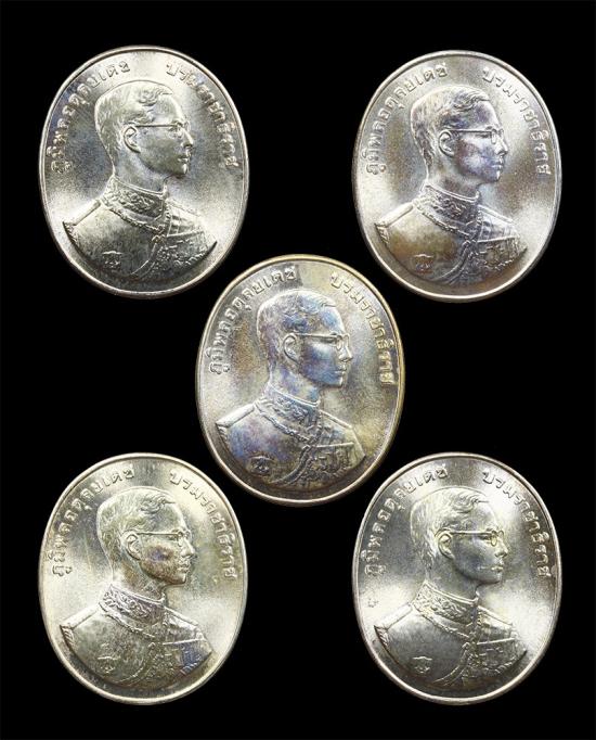 จัดสร้างโดยกรมธนารักษ์ ด้านหน้าเป็นพระบรมฉายาลักษณ์ ด้านหลังเป็นพระพุทธรูปที่สำคัญของประเทศ 5 องค์