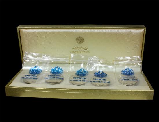 เหรียญพระพุทธปัญจภาคี ในหลวงครบรอบ ๕๐ ปี ๕ เหรียญ ๕ พิมพ์ ((เนื้อเงินพิมพ์ใหญ่)) พร้อมกล่อง