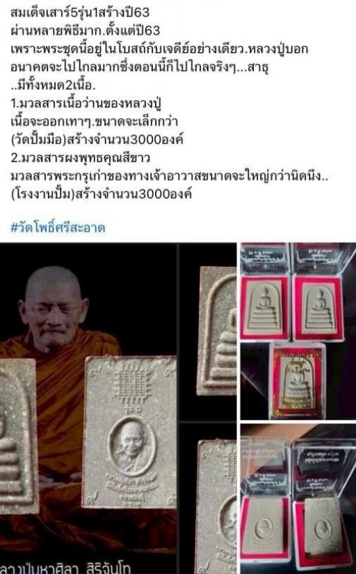 พระสมเด็จหลวงปู่ศิลา เสาร์ห้า รุ่น 1 ปี 2563 เนื้อมวลสารผงพุทธคุณ วัดโพธิ์ศรีสะอาด จ.กาฬสินธุ์ ประกันแท้ กล่องเดิม สร้างน้อยพระยุคต้น สภาพสวยสมบูรณ์ #หลวงปู่มหาศิลา |