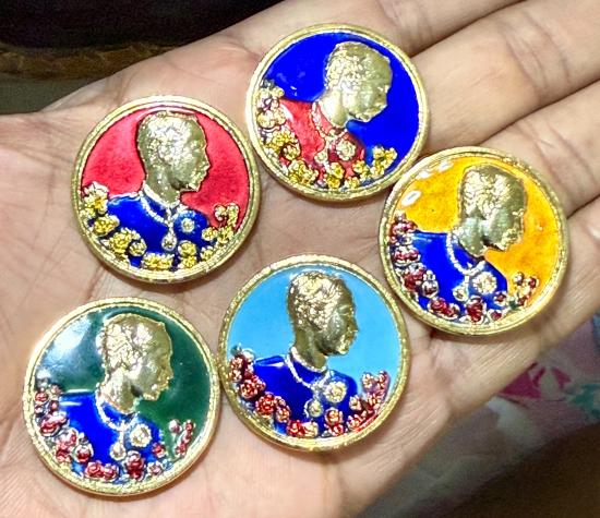 เหรียญรัชกาลที่ ๕ วัดแหลมแค ชลบุรีปี 2526 เนื้อทองแดงกะไหล่ทอง ลงยา ครับ
