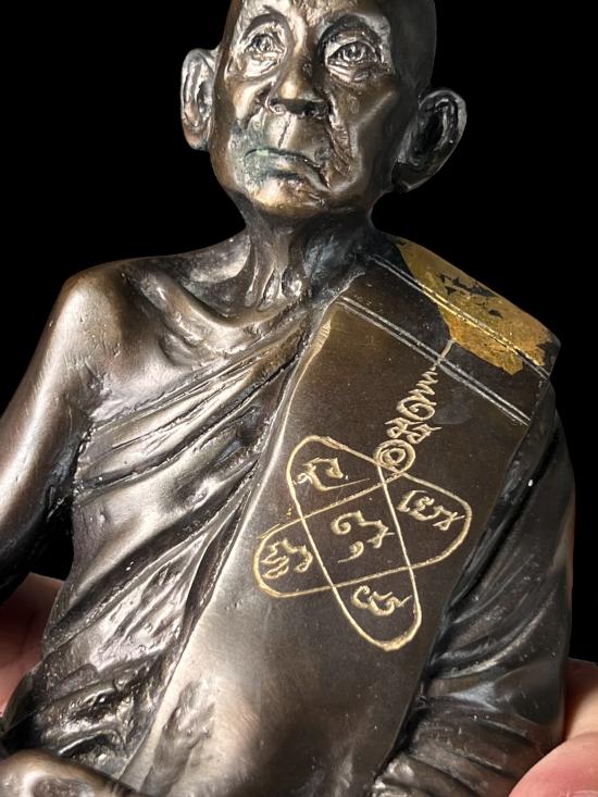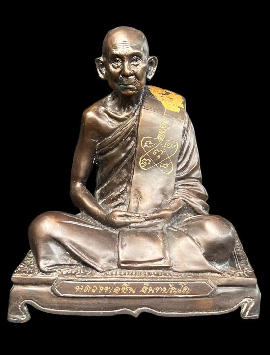 ชื่อพระเครื่อง พระบูชา พ่อท่านชื่น วัดในปราบ เคียนซา จ.สุราษฎร์ธานี เนื้อโลหะ ขาโต๊ะ ฝังแผ่นโลหะจารยันต์ หน้าตัก 5 นิ้ว