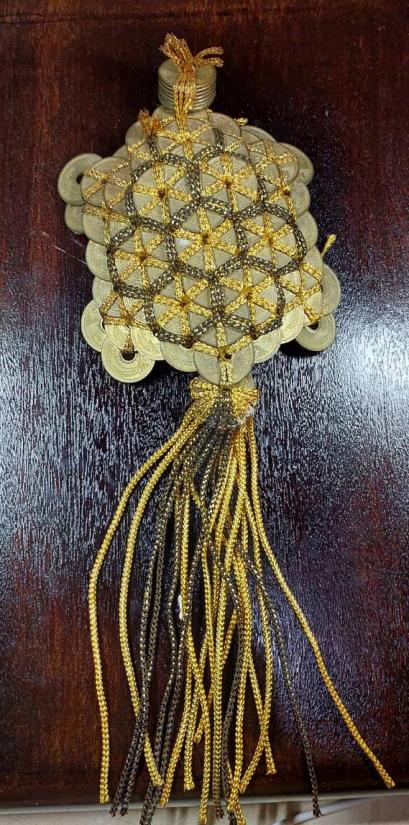 เหรียญ 5 เยน ของเก่า ทำเป็นเครื่องรางนำโชค รูปเต่า ขนาด 4.5 x 5.5 นิ้ว