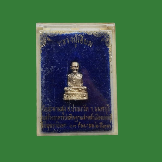 รูปหล่อหลวงปู่เอี่ยม วัดสะพานสูง เนื้อเงิน พิมพ์ใหญ่ รุ่นสร้างอาคารประดิษฐานเสาหลักเมืองนนทบุรี สร้างปี 2533 พร้อมกล่อง สร้างน้อย หายากครับ