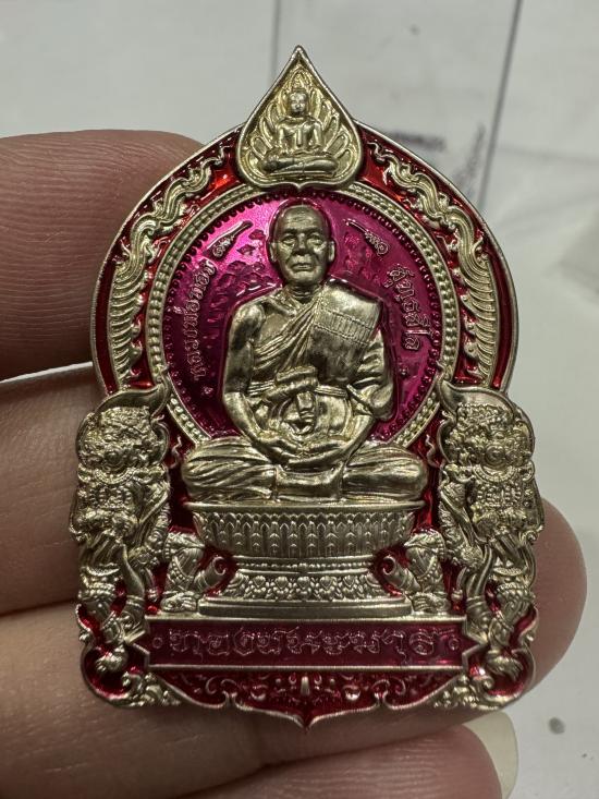 (เลขสวย 8)หลวงพ่อทอง วัดบ้านไร่ เหรียญนั่งพานทองชนะมาร ปี2565 เนื้ออัลปาก้า ลงยา no.8 มีกล่อง