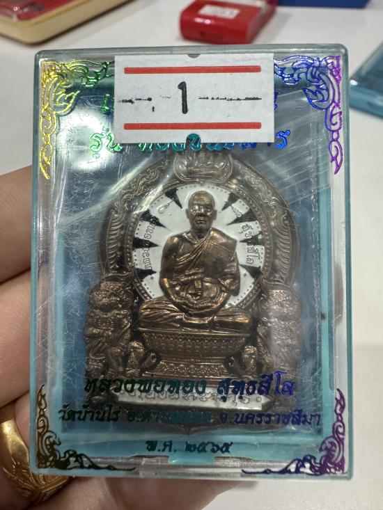 (เลขสวย 1)หลวงพ่อทอง วัดบ้านไร่ เหรียญนั่งพานทองชนะมาร ปี2565 เนื้อชนวน ลงยา no.1 มีกล่อง