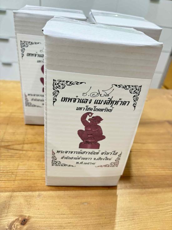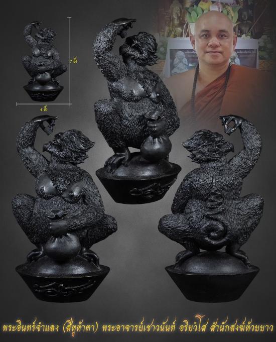 สี่หูห้าตา พระอาจารย์เชาว์ สำนักสงฆ์ห้วยยาว ขนาดบูชาสูง7“ เนื้อชนวนรมดำ ฝังตะกรุดใต้ฐาน ลุ้นเลขซีลเดิม