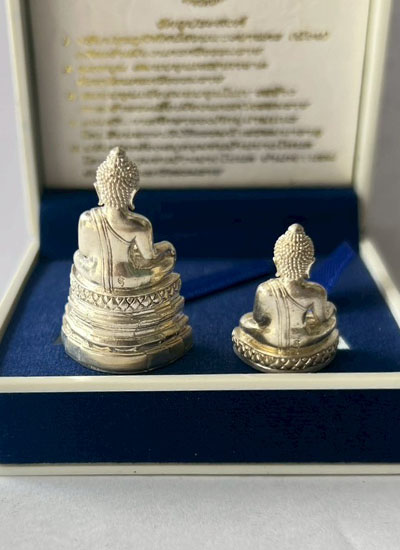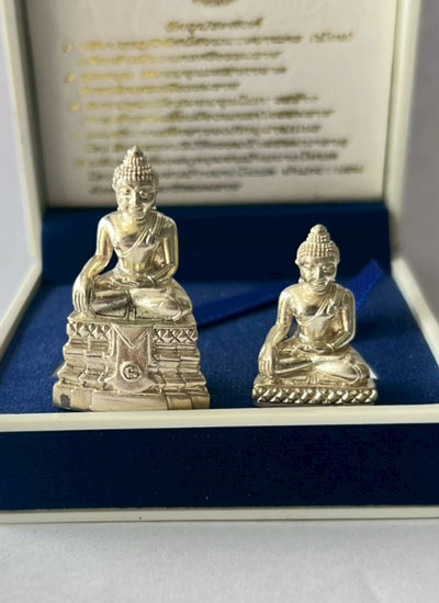 วัดใจ พระพุทธสิหงค์ รุ่นสิหิงค์55 ณ วัดพระมหาธาตุวรมหาวิหาร เนื้อเงิน 2 องค์ เลข44 เลขสวย