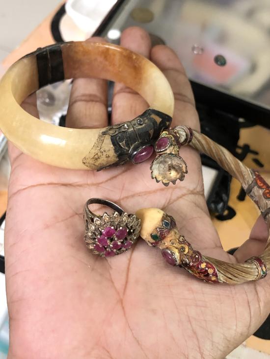 สินหลุดจำนำ กำไลหยกจับเงินพลอยทับทิม (ชำรุด) กำไลขนหางช้างจับเงินชุบทองพลอยทับทิม (ชำรุด) แหวนเงินแท้พลอยทับทิม การันตีน้ำหนักเงินขั้นต่ำ 10 กรัม ( อาจถึง 15-20 กรัม ) |