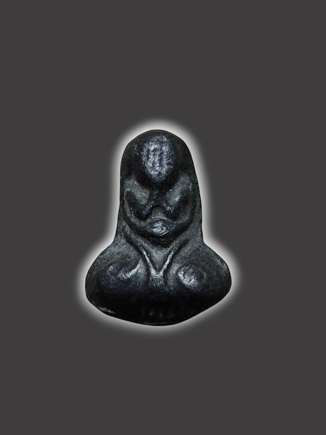 A2562.พระปิดตา เนื้อชินตะกั่ว หลังจารย์ ไม่ทราบที่ เคาะเดียวเเดง