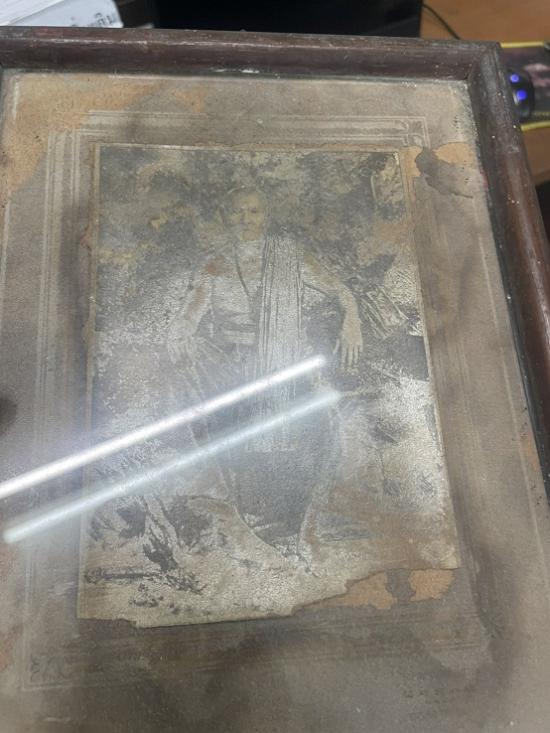 ไม่ทราบปี กรอบเก่า รูปมีปรอทขึ้นทั่วทั้งใบ มีตำหนิมุมขวาล่างนะครับ