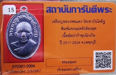เหรียญแจกแม่ครัว หลวงพ่อแดง พร้อมบัตร |