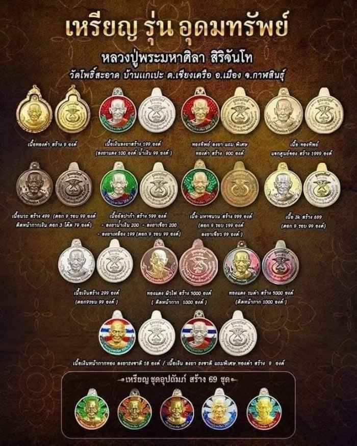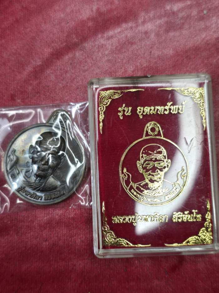 เหรียญอุดมทรัพย์ หลวงปู่มหาศิลา สิริจันโท เนื้อนวะโลหะ เลข 231 ปี64 พร้อมกล่องเดิม |