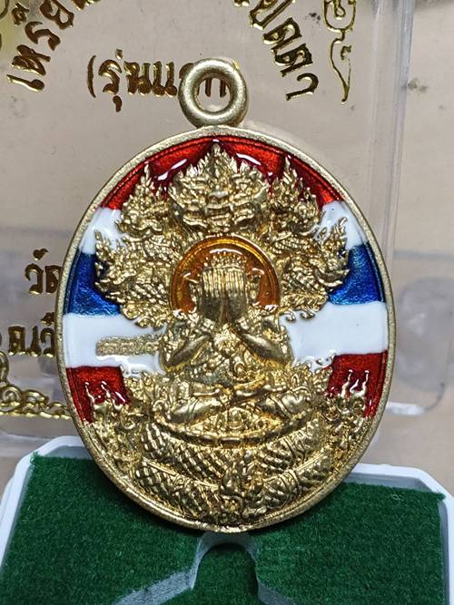 เหรียญหล่อพระปิดตา (รุ่นแรก) ชนวนระฆัง ลงยาสีธงชาติ