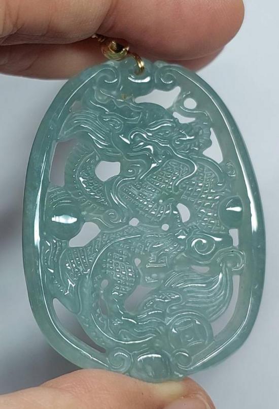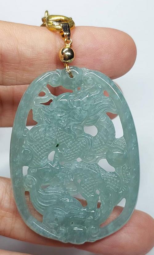 จี้มังกรหยก (มังกรนำโชค) วัดมังกรกมลาวาส (เล่งเน่ยยี) เนื้อหยกสีโอเชี่ยนบลู สวยๆ |