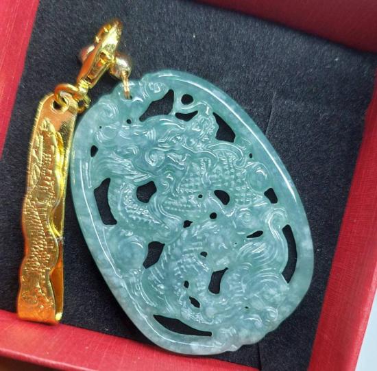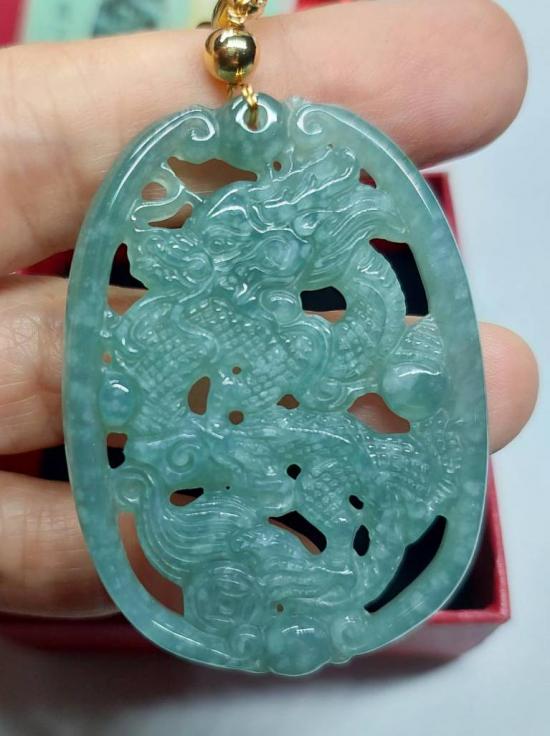 จี้มังกรหยก (มังกรนำโชค) วัดมังกรกมลาวาส (เล่งเน่ยยี) เนื้อหยกสีโอเชี่ยนบลู สวยๆ |