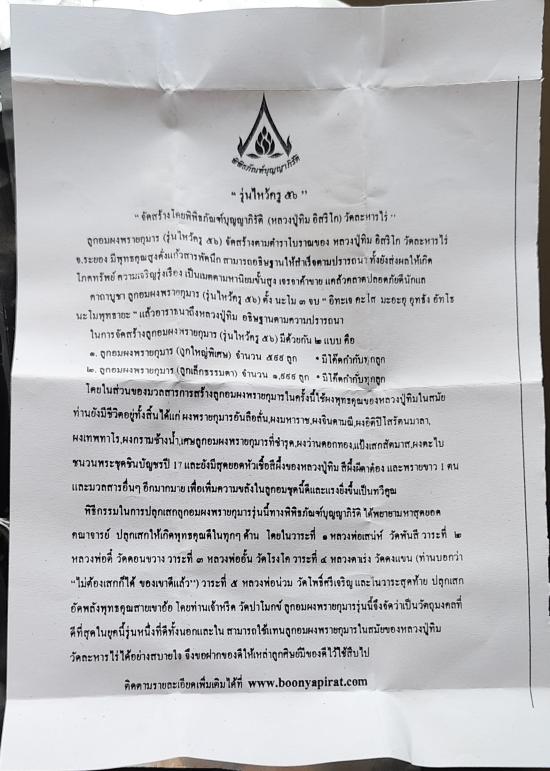 ลูกอมผงพรายกุมารหลวงปู่ทิมวัดละหารไร่รุ่นไหว้ครู 56 จัดสร้างโดยพิพิธภัณฑ์บุญญาภิรัตน์ลูกเล็กจัดสร้างจำนวน 1999ลูก |