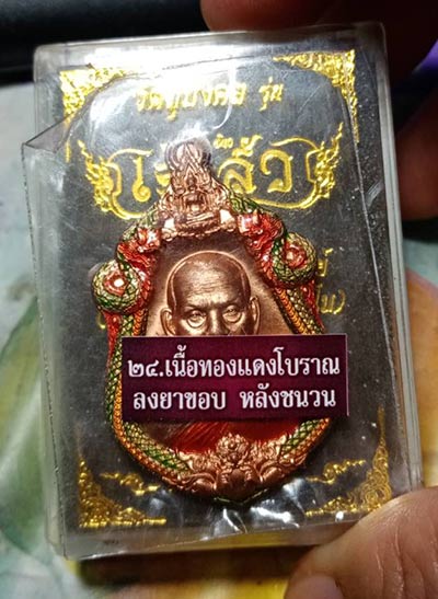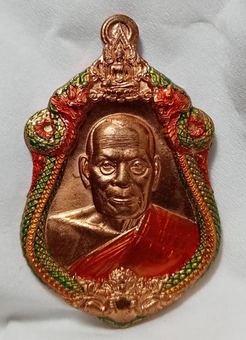 119........วัดใจ เหรียญ เจ้าสัว หลวงพ่อพัฒน์ จัดสร้างโดย บอยท่าพระจันทร์ ปี 2565 เนื้อทองแดงโบราณลงยาขอบ หลังหน้ากากชนวน สวยเดิมกล่องเดิม |