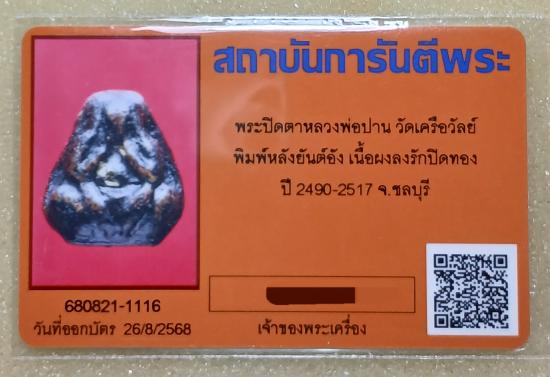 เคาะเดียว...ปิดตาหลวงพ่อปาน วัดเครือวัลย์ ชลบุรี พิมพ์หลังยันต์อัง หายาก เนื้อผงลงรัก ปี 2490-2517 พระสวยรักแดงๆครับ พร้อมบัตรรับรองจากทางเว็บ |