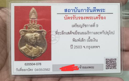 ชื่อพระเครื่อง ((วัดใจ)) เหรียญเงิน กะไหล่ทอง ร.9 และราชินีพันปีหลวง เสด็จเยือนสหรัฐอเมริกาและทวีปยุโรป ปี 2503 พิมพ์เล็กสวย