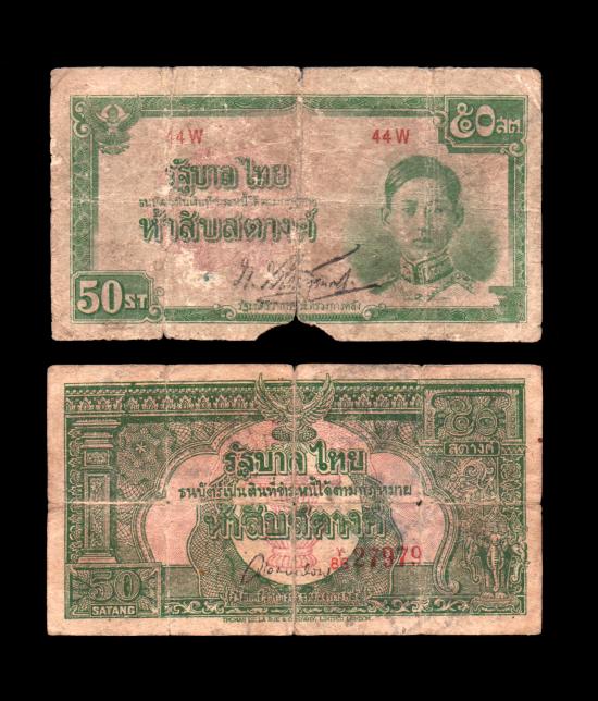 วัดใจ เคาะเดียว 2 ฉบับ ธนบัตรชนิดราคา 50 สตางค์ 2 รุ่น ประกอบด้วยรุ่นลายไทย และรุ่น แบบที่ 5 ผลิตที่ญี่ปุ่น สมัย ร.8 ปี 2488 หายากทั้งสองรุ่น