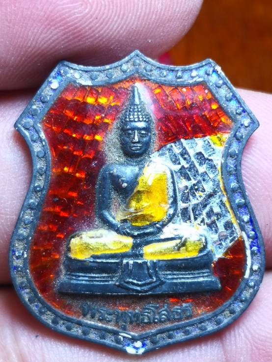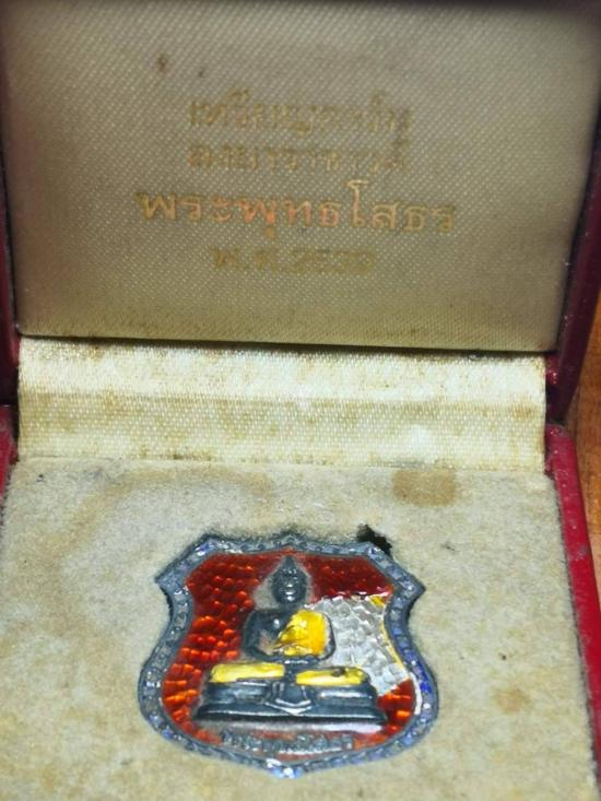 เหรียญหลวงพ่อโสธรเนื้อเงินลงยาสีแดง (อย่ากะเทาะร่อน) สภาพตามรูปราคาเบาๆ