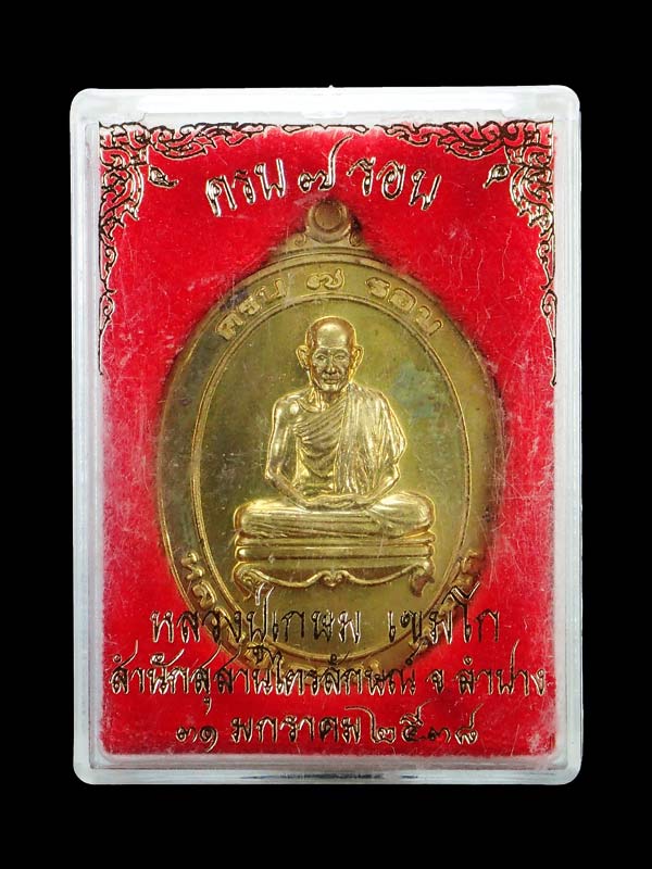 ###### เหรียญครบ 7 รอบ หลวงพ่อเกษม เขมโก ปี 2538 เนื้อฝาบาตร ตอกโค๊ต กล่องเดิม สวยเดิม ######