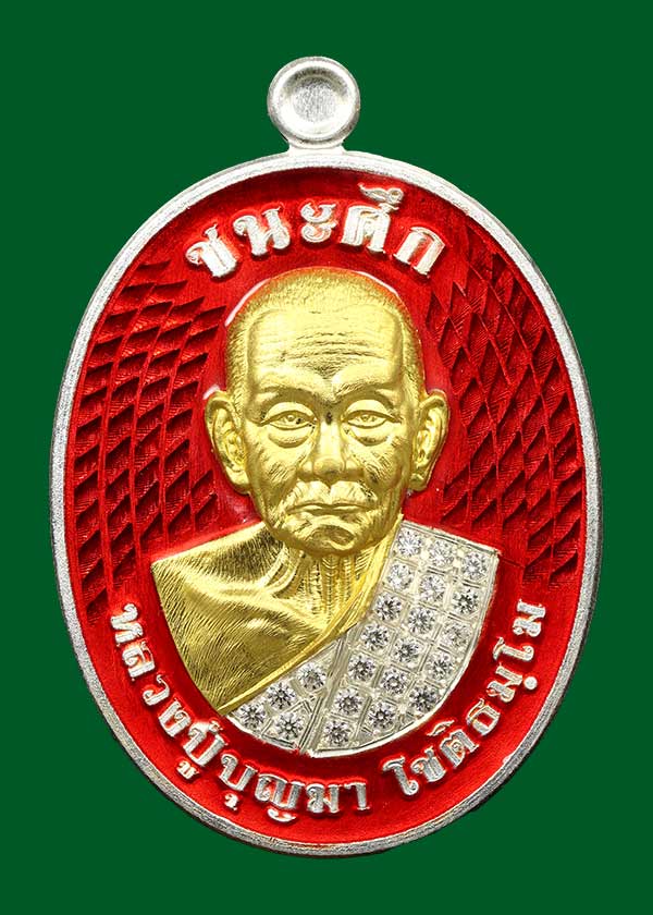 เหรียญหลวงปู่บุญมา สำนักสงฆ์เขาแก้วทอง จ.ปราจีนบุรี รุ่นชนะศึก(กันภัย) ปี 2567 เนื้อเงิน หน้ากากทองคำ ฝังพลอย หมายเลข ๑๙