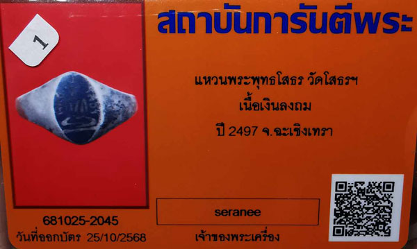 แหวนพระพุทธโสธร วัดโสธรฯ เนื้อเงินลงถม ปี2497 จ.ฉะเชิงเทรา + บัตรG-pra สภาพเดิมค่ะ |