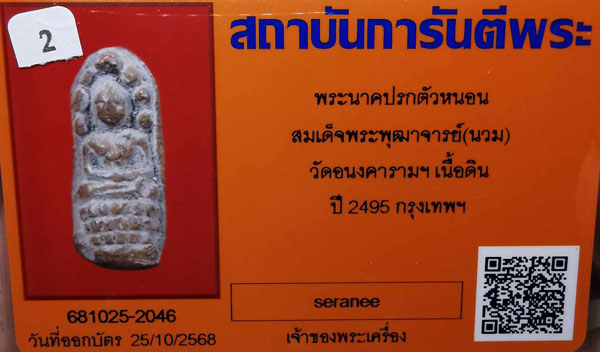 พระนาคปรกตัวหนอน สมเด็จพระพุฒาจารย์(นวม) วัดอนงคารามฯ เนื้อดิน ปี2495 จ.กรุงเทพฯ บัตรG-pra สภาพเดิมค่ะ |