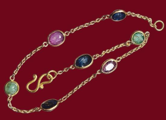 สร้อยข้อมือทองเก่า ประดับพลอยแท้ พร้อมบัตรตรวจเปอร์เซ็นต์ทอง