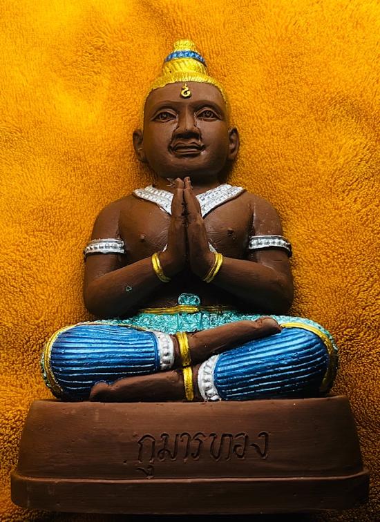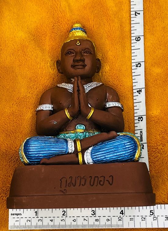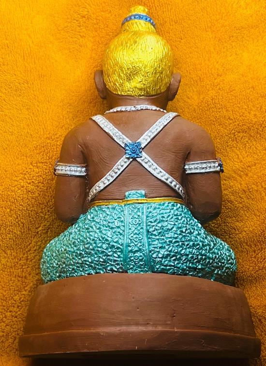ขนาดฐานกว้าง 4.5 นิ้ว สูง 6.5 นิ้ว ลงสีเดิม เนื้อเซริก้าผสมมวลสาร ใต้ฐานติดแผ่นเงินแท้จารยันต์ หมายเลข 33 สภาพสวย แป้งเจิมเดิมๆ