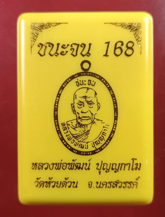 30 แดง... เหรียญชนะจน 168 (PSGA) หลวงพ่อพัฒน์ วัดห้วยด้วน เนื้อชนวน ลงยาจีวร หมายเลข 863