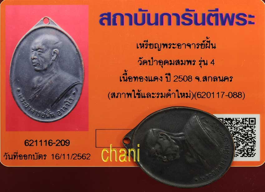 เหรียญ พระอาจารย์ฝั้น วัดป่าอุดมสมพร รุ่น4 เนื้ิอทองแดง ปี2508 จ.สกลนคร สภาพรมดำใหม่แต่สวยคมชัด หายาก พร้อมบัตรรับรองพระแท้จากจีพระอุ่นใจได้ ไม่ต้องลุ้นค่ะ