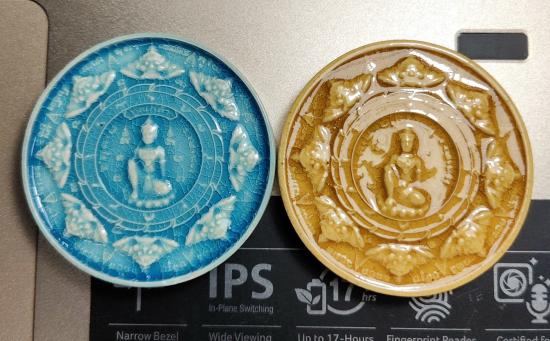 องค์พ่อจตุคามรามเทพ ลูกเคลือบสีฟ้า สีเหลือง รุ่นปฐมกษัตริย์ศรีวิชัยสุวรรณภูมิ ปี50 |