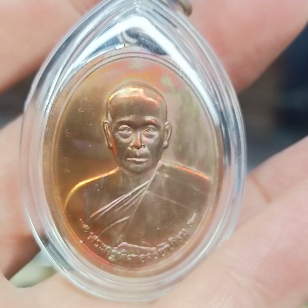 เหรียญฟาต้าไฉ พระมหาสุรศักดิ์ วัดประดู่พระอารามหลวง พ.ศ. 2556 เนื้อทองแดง เลข 11948 มีจาร เลี่ยมกันน้ำพร้อมบูชา