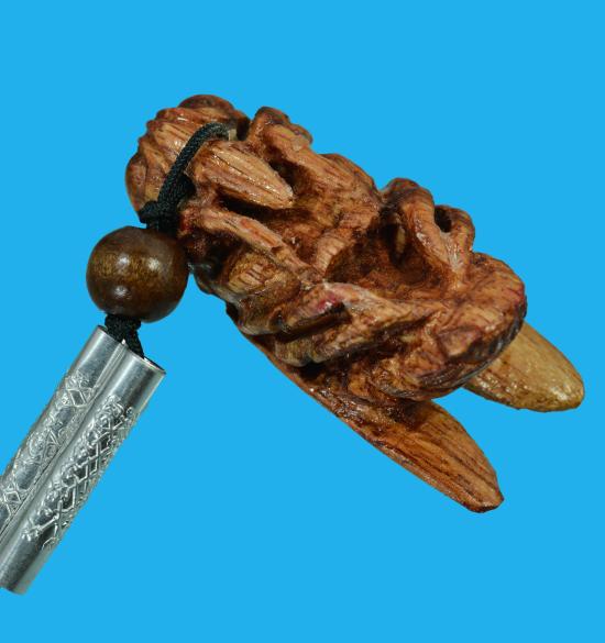 ชื่อพระเครื่อง แมลงภู่คำเชียงตุง ไม้ประดู่ดุมล้อ ขาทะลุ บรรจุปรอทในตัว ลงรักน้ำเกลี้ยง ขนาด 2.2 นิ้ว พร้อมตะกรุดยันตเกราะเพรช ๒ ดอก
