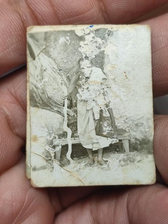 รูปถ่ายพระคณาจารย์ 2 รูปประกบกัน ด้านในมีรอยจาร ขึ้นปรอท เก่ามาก ไม่ทราบที่ |