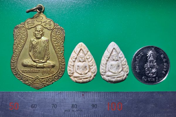 180.- @@ " เหรียญเสมา + พระพิมพ์หยดน้ำ เนื้อผงกระดูกผี 2 องค์ " หลวงปู่สิมมา วัดบ้านหมอ จังหวัดสระบุรี @@ |