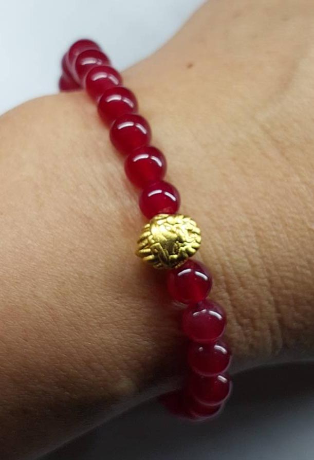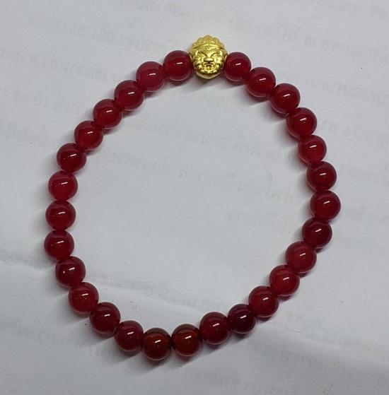 ***วัดใจ***สร้อยข้อมือ ทับทิม พร้อมจี้ลายเห้งเจีย เนื้อเงินชุบทอง เม็ด 6 มิล สวยๆ |