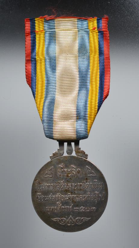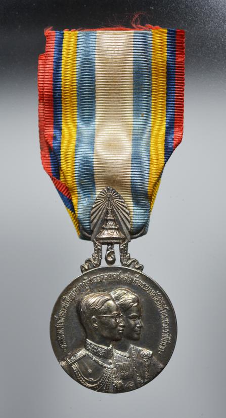 เหรียญแพรแถบที่ระลึกเสด็จพระราชดำเนิน สหรัฐอเมริกา-ทวีปยุโรป ปี 2503 พิมพ์ใหญ่ บล็อกนอก(นิยม) เนื้อเงินไม่ผ่านการล้าง