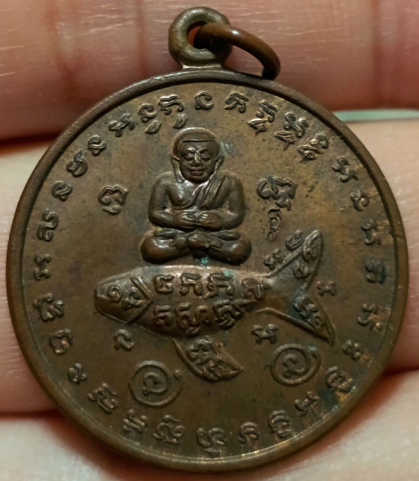 หลวงปู่หลิว เหรียญรุ่นโภคทรัพย์ พิมพ์สังกัจจายน์ทรงทรงสัตว์ ขี่ปลา วัดไร่แตงทอง จ.นครปฐม ปี 2534-2535 ตอกโค้ด เคาะเดียว |