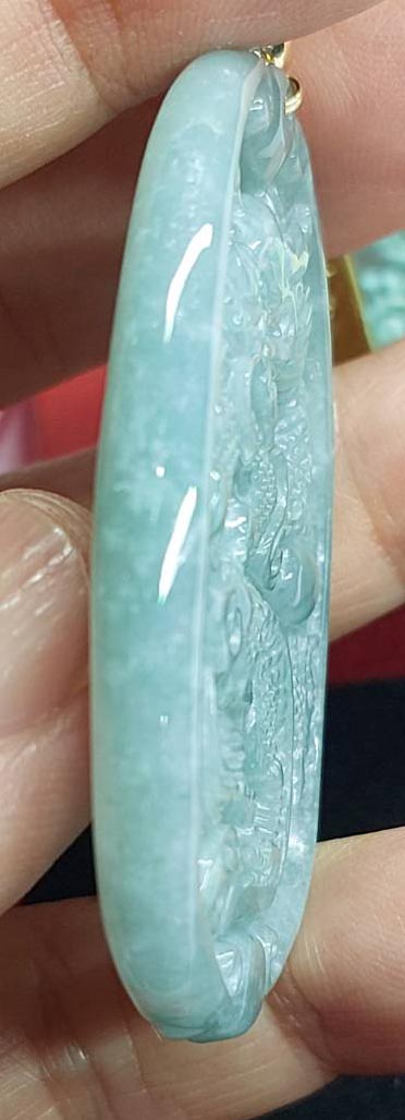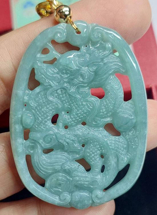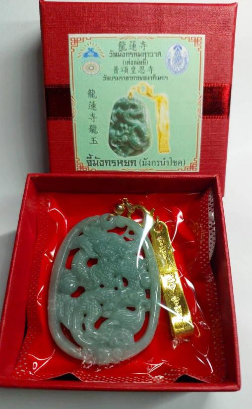 จี้มังกรหยก (มังกรนำโชค) วัดมังกรกมลาวาส (เล่งเน่ยยี) เนื้อหยกสีโอเชี่ยนบลู สวยๆ |