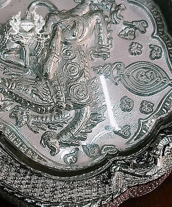 เหรียญเทวดาขี่สิงห์เนื้อเงิน ปี ๒๕๕๑ พร้อมกรอบเงินยกซุ้มประดับพลอย