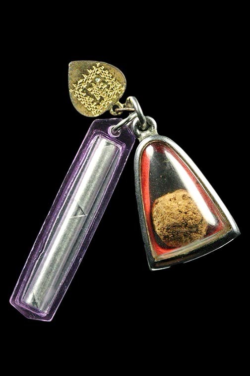 ล็อกเก็จกับชาญหมากหลวงพ่อฤาษีลิงดำวัดท่าซุง กับตะกรุดอยู่ในชุดเดี่ยวกัน จังหวัดอุทัยธานี