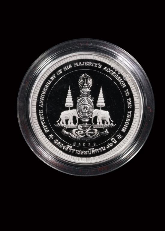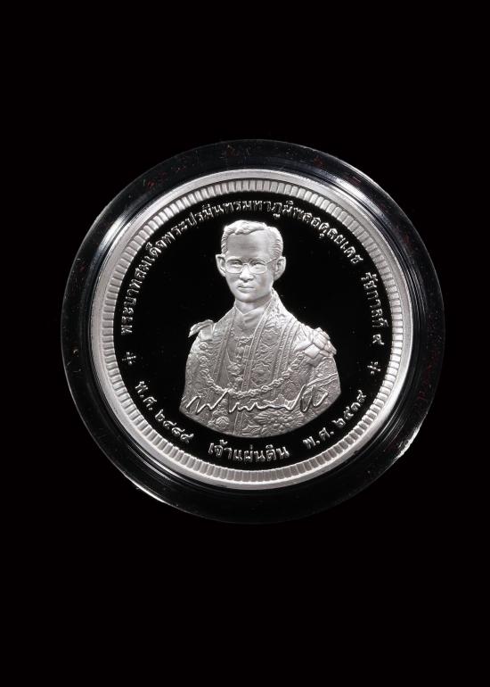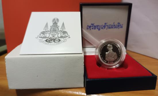 รายละเอียด เหรียญเจ้าแผ่นดิน ในหลวงร.9 ทรงครองสิริราชสมบัติครบ 50ปี ปี2539 (((เนื้อเงิน ขัดเงาสามมิติ))) ไม่ผ่านใช้ กล่อง+ใบ