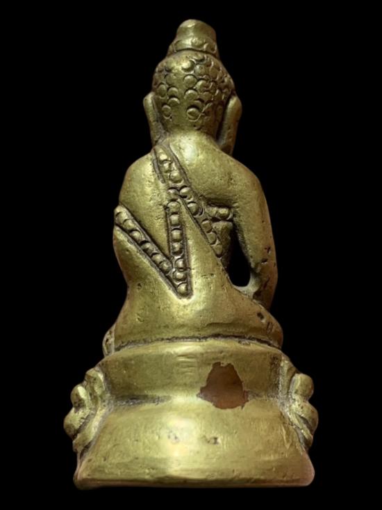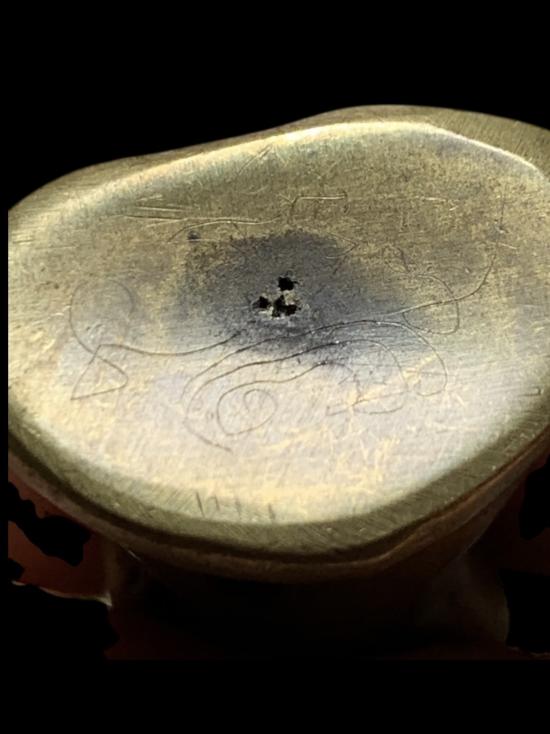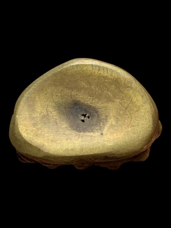 พระกริ่งเนื้อโลหะ กริ่งดัง ก้นมีจาร ไม่ทราบที่ครับ |